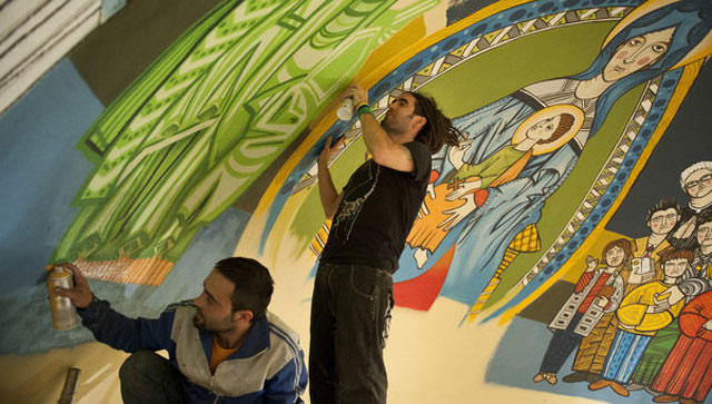 Barcelona'ya yakın L'Hospitalet bölgesinde bulunan Santa Eulalia kilisesinin kubbesine fresk yapmaları için graffiticiler görevlendirildi, sonuç herkesi memnun etti...