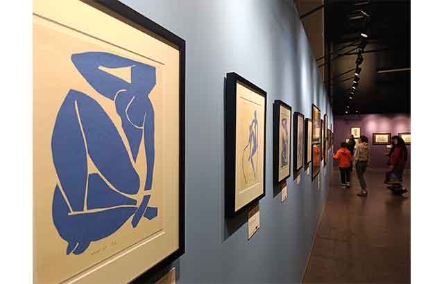 Sanatçının küratöryel tabir ile ‘Kromatik Doğaçlamalar’ı eşliğinde, Verve dergisi adına geç 1950’lerde, vefatından hemen önce ürettiği ikonik mavi nü kadın formlarının seri halde izleyiciyi selamladığı sergide, siyah beyaz taşbaskı portrelerine, ‘Zamanı Aşan Dans’ıyla Matisse’in ‘iki, üç darbeyle’ türettiği inanılmaz kadın formlarına da tanıklık söz konusu görünüyor.
