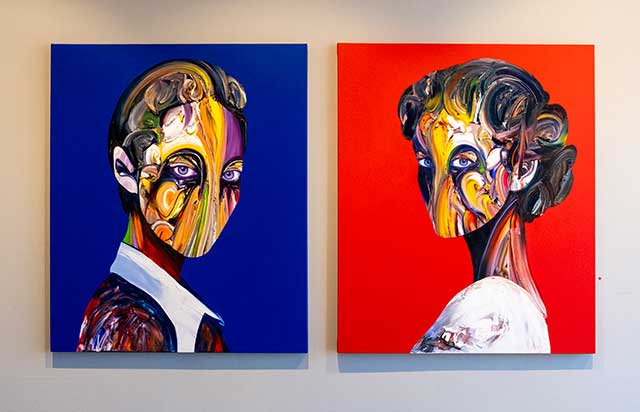 Şahin Demir’in resimlerinde yüz, eriyen, yeniden katmanlaşan ve sürekli dönüşen akışkan bir imge olarak beliriyor. Boyanın çözülüşü, kimliğin her bağlamda yeniden şekillendiğine işaret ederken, bakışın netliği, bu değişimin ortasında bile sürdürülen performansı vurguluyor. Kimlik burada sabit değil, anlık, geçirgen ve kırılgan bir sahne olarak karşımıza çıkıyor.