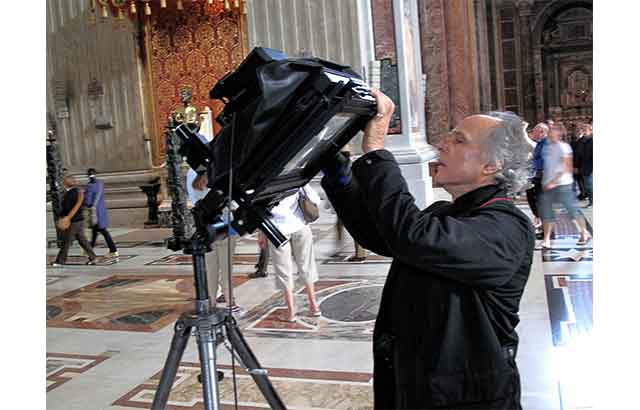Sergide, Ertuğ’un 8×10 inç büyük format bir körüklü kamera ve filmle çalışarak yavaş, bilinçli ve tefekküre dayalı bir süreçle çektiği 29 devasa fotoğraf arasında İtalya’daki tarihi katedraller, saraylar, tiyatrolar, kütüphaneler ve müzeler yer alıyor.