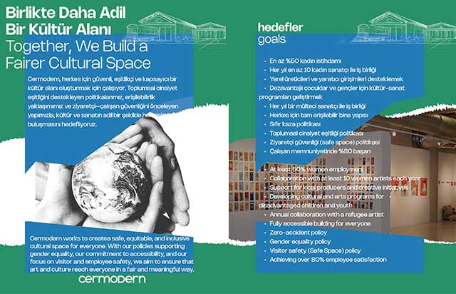 Rapor; çevresel performans, toplumsal katkı, erişilebilirlik, etik yönetim ve kültürel çeşitlilik gibi alanlarda kapsamlı bir yol haritası ortaya koyuyor. Bu doğrultuda CerModern;