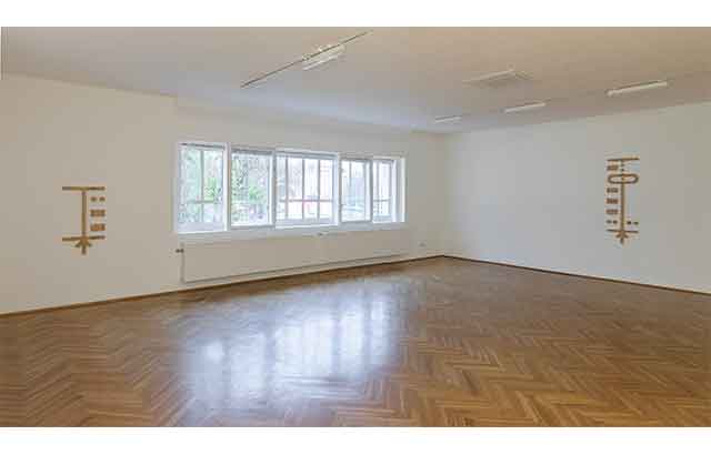 Bu sergi için Erek, Secession binasının cephesini ‘süslüyor’. Hoparlörler, binanın dış duvarlarına simetrik bir düzenle monte edilmiş. Hoparlörler, ikonik mimariyi sadece görsel olarak değil, akustik olarak da vurguluyor ve cepheyi duyulabilir bir yüzeye dönüştürüyor. Ritmik desenlerin sürekli döngüleri, binanın geometrisini ortaya çıkarırken aynı zamanda yeniden yapılandırıyor. Erek, görme engelli insanlar için trafik ışıklarına yerleştirilen ses kutuları gibi yönlendirme ve erişilebilirlik araçlarına atıfta bulunarak, algı politikasına, yani rehberlik, kontrol ve bakım sistemleri aracılığıyla mekanın nasıl düzenlendiğine de dikkat çekiyor. Binanın cephesine genellikle “sol” ve “sağ” anlamına gelen ‘L’ ve “R” harflerini yerleştirerek Erek, simetri üzerine, stereofonik sesin ikili kanalları, insanlarda ve birçok hayvanda işitmenin iki taraflı doğası, klasik mimarinin anıtsal cepheleri ve soyut siyasi yelpazeyi yapılandıran ideolojik bölünmeler arasında bir oyun daha sahneliyor.