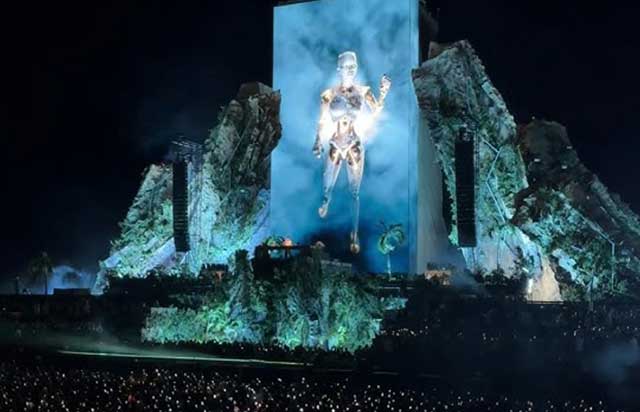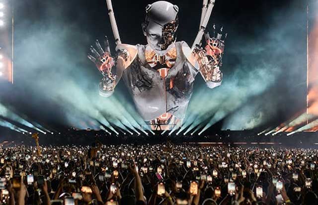 Anyma’yı çağdaş elektronik sahnede farklı bir noktaya taşıyan en önemli unsur, canlı performanslarının sinematografik yapısı. Sahneye yerleştirilen dev LED yüzeylerde, yapay zekâ tarafından üretilmiş hiper-gerçekçi karakterler, organik ve mekanik formlar iç içe geçiyor.