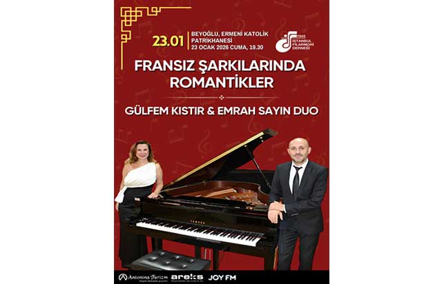 Beyoğlu Ermeni Katolik Patrikhanesi’nin tarihi dokusunda, Fransız romantizminin zarif ve büyülü atmosferine açılan özel bir konser müzikseverleri bekliyor. “Fransız Şarkılarında Romantikler” başlıklı bu akşamda, mezzosoprano Gülfem Kıstır ile piyanist Emrah Sayın, Ravel’den Poulenc’e, Massenet’den Bizet’e uzanan seçkin bir repertuar sunacak. Patrikhanenin etkileyici akustiği, Fransız vokal geleneğinin duygusal incelikleriyle birleşerek unutulmaz bir gece yaratacak. İki sanatçının uyumlu birlikteliğiyle şekillenen bu özel program, Fransız müziğinin romantik renklerini patrikhanenin büyülü atmosferine taşıyacak.