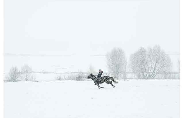 Hasan Cem Araptarlı: Bu seride, estetiğin büyük ölçüde sahada, koşulların dayattığı belirsizlikler içinde şekillendiğini söyleyebilirim. Kar, planlananı sürekli bozan; ışığı, mesafeyi, hareketi ve zamanı her an yeniden tanımlayan bir doğa hâli. Bu da fotoğrafçıyı önceden belirlenmiş estetik reçetelerden vazgeçmeye zorluyor. Bu anlamda estetik, dayatılan bir form değil, koşullarla kurulan bir müzakerenin sonucu oldu.