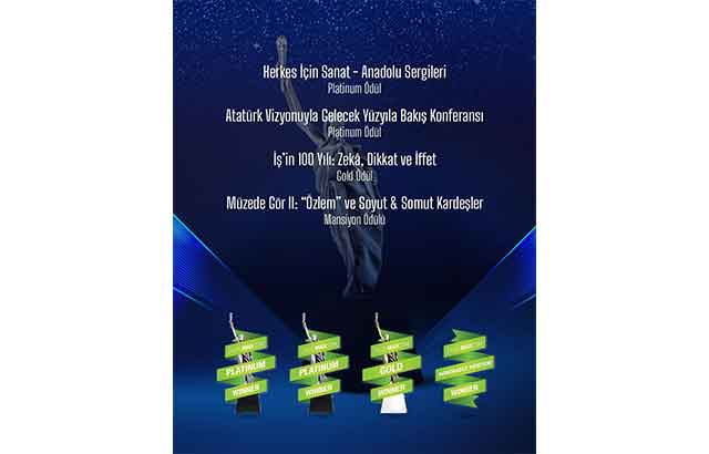 Türkiye İş Bankası Sanat Eserleri Koleksiyonu’ndan yapılan özel seçkileri sanatseverlerle buluşan “Herkes için Sanat: Anadolu Sergileri”, Stratejik İletişim / Kurumsal Sosyal Sorumluluk kategorisinde platin ödülün sahibi oldu. Estetik nitelikleriyle olduğu kadar, tarihsel ve kültürel tanıklıklarıyla da büyük bir önem taşıyan sanat eserlerinin ülkemizin her köşesinde erişilebilir olmasını amaçlayan proje, İş Bankası şubelerini Temmuz ayından bu yana geçici sanat mekânlarına dönüştürüyor. Türkiye İş Bankası Resim Heykel Müzesi’nin öğrenme programlarının düzenli faaliyetlerinden biri olan Anadolu Sergileri, ortak kültürel mirasımızı doğduğu topraklarda bugünün kuşaklarıyla buluşturmayı sürdürecek.