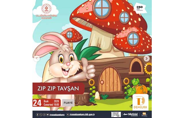 Eğlenceli ve öğretici çocuk oyunu Zıp Zıp Tavşan, 24 Ocak 2026 Cumartesi günü saat 16.00’da Fuaye sahnesinde izleyiciyle buluşacak. Ormanda arkadaşlarıyla mutlu bir yaşam süren Zıp Zıp Tavşan, ormana zarar vermeye çalışan bir hokkabazla karşılaşacak. Hikâye boyunca tavşanın zekâsı ile hokkabazın numaraları karşı karşıya gelecek. Oyunda aklın, doğa sevgisinin ve iyiliğin önemi vurgulanacak.