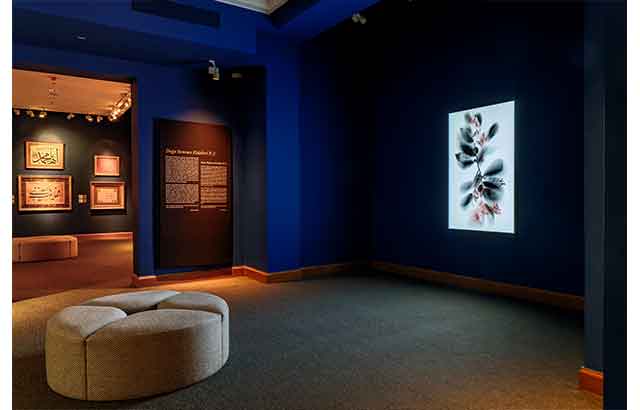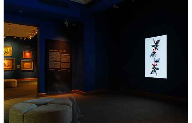 Durusoy’un videosu, Kitap Sanatları ve Hat Koleksiyonu’ndaki bitkisel motiflerle süslenmiş eserleri ile sıra dışı bir etkileşim kuruyor, altın yaldızla bezenmiş simetrik kaligrafik kompozisyonlardan ilham alarak, doğa ve teknoloji arasındaki gerilimi adeta “dijital bir natürmort” olarak yeniden yorumluyor.