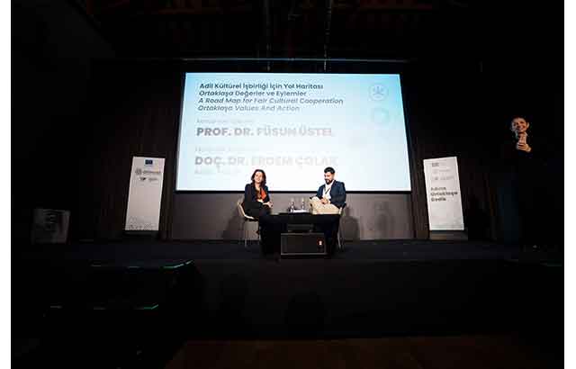 Etkinliğin sabahki bir diğer oturumunda, Prof. Dr. Füsun Üstel tarafından kaleme alınan “Adil Kültürel İşbirliği İçin Yol Haritası: Ortaklaşa Değerler ve Eylemler” başlıklı politika metni üzerine bir söyleşi düzenlendi. Doç. Dr. Erdem Çolak’ın moderasyonundaki konuşmada, kültür-sanat alanında erişim, katılım ve kapsayıcılık ilkelerinin kavramsal zemini ve bu ilkelerin kültürel işbirliklerine nasıl yansıtılabileceği ele alındı.