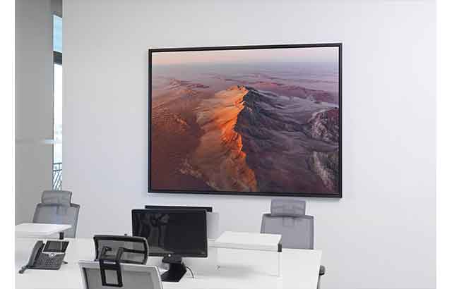 Edward Burtynsky, Kumullar #1, Sossusvlei, Namib Çölü, Namibya, 2018. Sanatçının izniyle; Flowers Gallery, Londra. Sergiden görünüm: Borusan Contemporary, İstanbul, 2025. Fotoğraf: Hadiye Cangökçe
