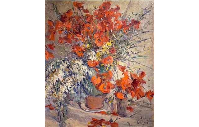 Feyhaman Duran “Gelincikler”, İmzalı, 30 Mayıs 19.. tarihli. Kalın mukavva üzerine yağlıboya 74 x 63 cm Provenans: Sabahattin Ergi Ailesi Koleksiyonu. Fiyat istek üzerine verilir.