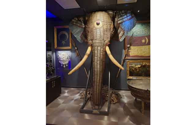 Hisart’ta sergilenen eserlerin bazıları gerçekten çok ilginç. İlk dikkatimi çeken tüm görkemiyle müzenin girişinde ziyaretçileri karşılayan dev bir fil kafası oluyor, üstelik zırhlı. Meğer Türkiye’de ve dünyada ilk kez, Osmanlı dönemine ait özel taşlar ve motiflerle süslenmiş, eşi benzeri olmayan bu Fil Kafa Zırhı, Hisart’ta sergileniyormuş.