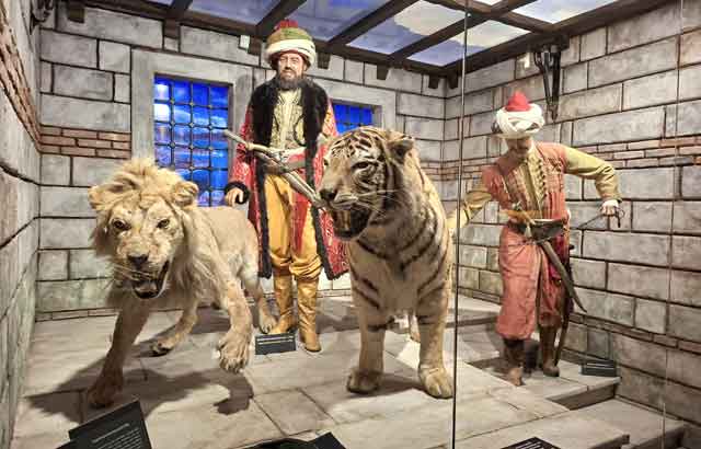 Bir başka ilgimi çeken ki kimin olsa ilgisini çekecek canlandırma doldurulmuş aslan ve kaplanıyla Cezayirli Gazi Hasan Paşa.