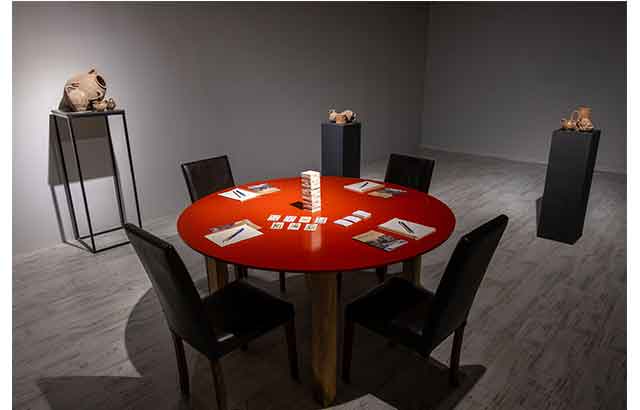 David Blandy, “Artzamanlı, Masaüstü Rol Yapma Oyunu”, 2024 Diachronic, TTRPG, 2024, sergiden görünüm Photo Credit: Saygın Mavinil, CABININ 2025