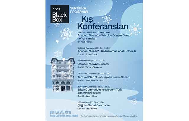 Birbirinden değerli sanat tarihi uzmanları eşliğinde sürdürülecek altı haftalık program cumartesi veya pazar günleri 11.00-13.00 saatleri arasında BlackBox’ta düzenlenecek. Sanatseverler, konferans serisindeki etkinliklere tek tek katılabilecek. Tüm oturumlara katılanlara ise program sonunda bir sertifika sunulacak.