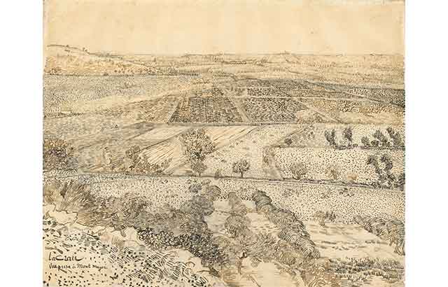 Vincent van Gogh, La Crau Seen from Montmajour, 1888. Pencil, pen and reed pen and ink, on paper, 49 x 61 cm. Van Gogh Museum, Amsterdam (Vincent van Gogh Foundation)